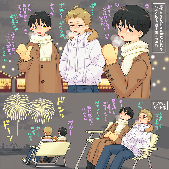 去年、冬に花火観たなあと思い出し、冬花火デート絵描きました。