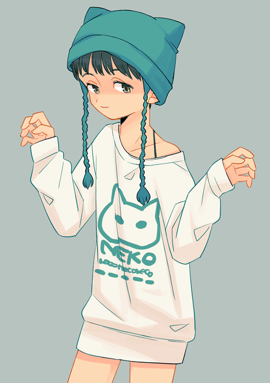 暖かそうな服を着せたいと思い、なんか猫耳かバニー描きたいなあと思い、猫耳のぼうしを描いた‥